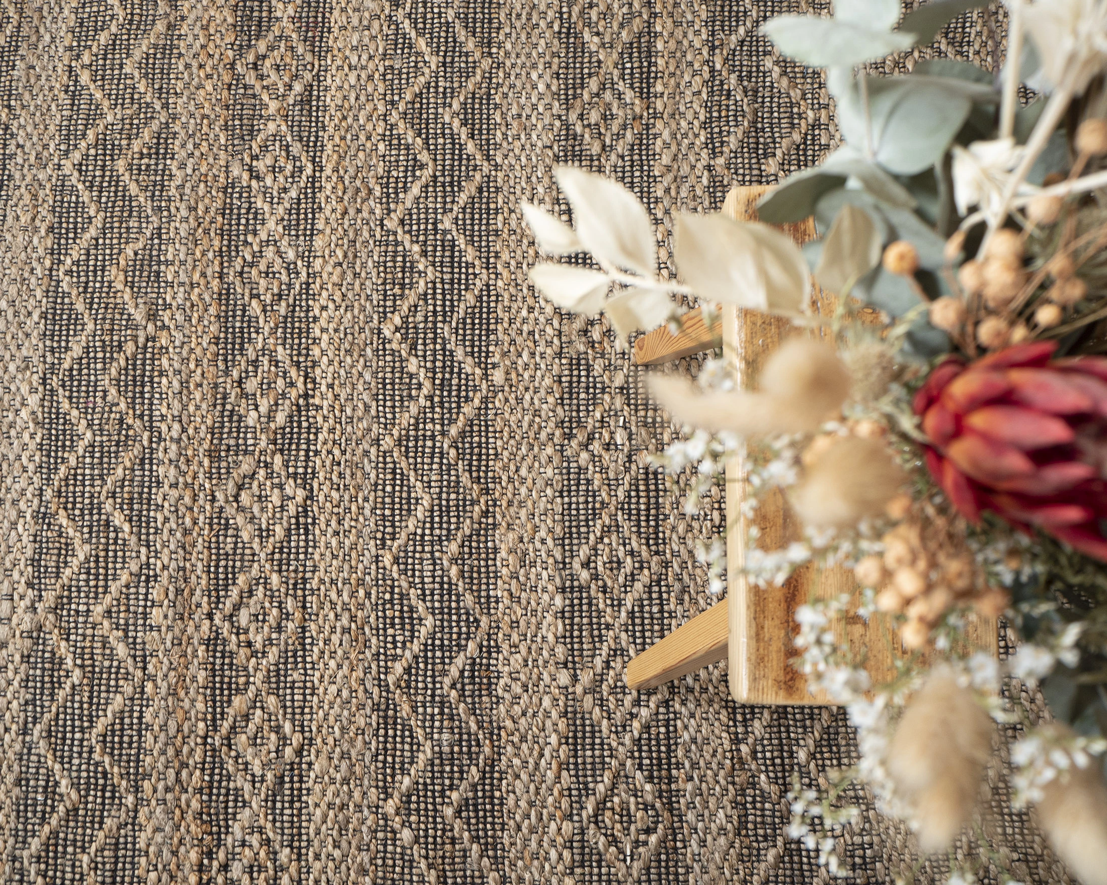 Aksel on trendikäs mustakuvioinen juuttimatto kodin eteis- ja oleskelutiloihin. Kokeile luonnolliseen skandinaaviseen sisustukseen tai bohotyyliin. Musta loimilanka tuo kauniin ilmeen kudottuun juuttimattoon.