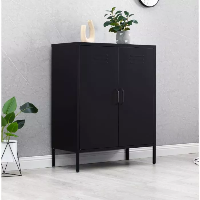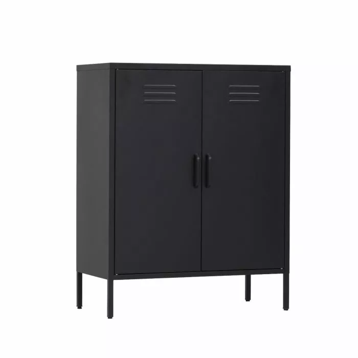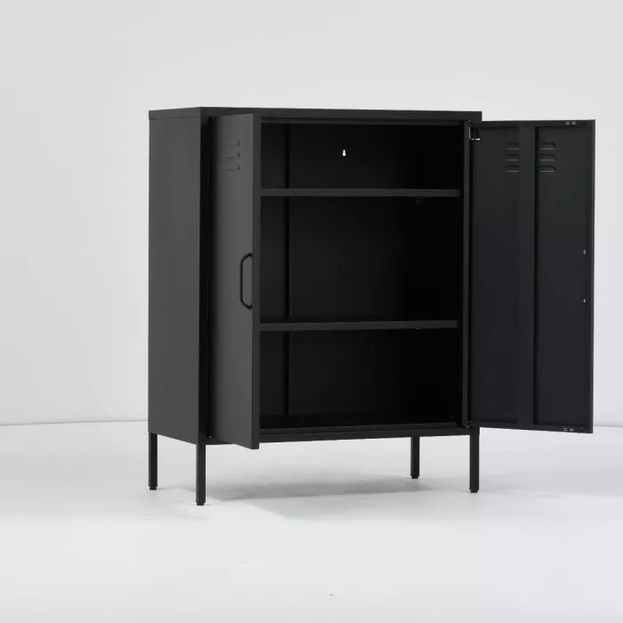 Tyylikäs metallinen matala Carbon-kaappi. Kaapin sisällä on kaksi säädettävää välihyllyä, joiden leveys on 79,5 cm ja syvyys 35,2 cm. Hyllyjen kantavuus on 10 kg. Kaapissa on säädettävät 15 cm korkeat jalat. Kaapin leveys on 80 cm, syvyys 40 cm ja korkeus 105 cm.