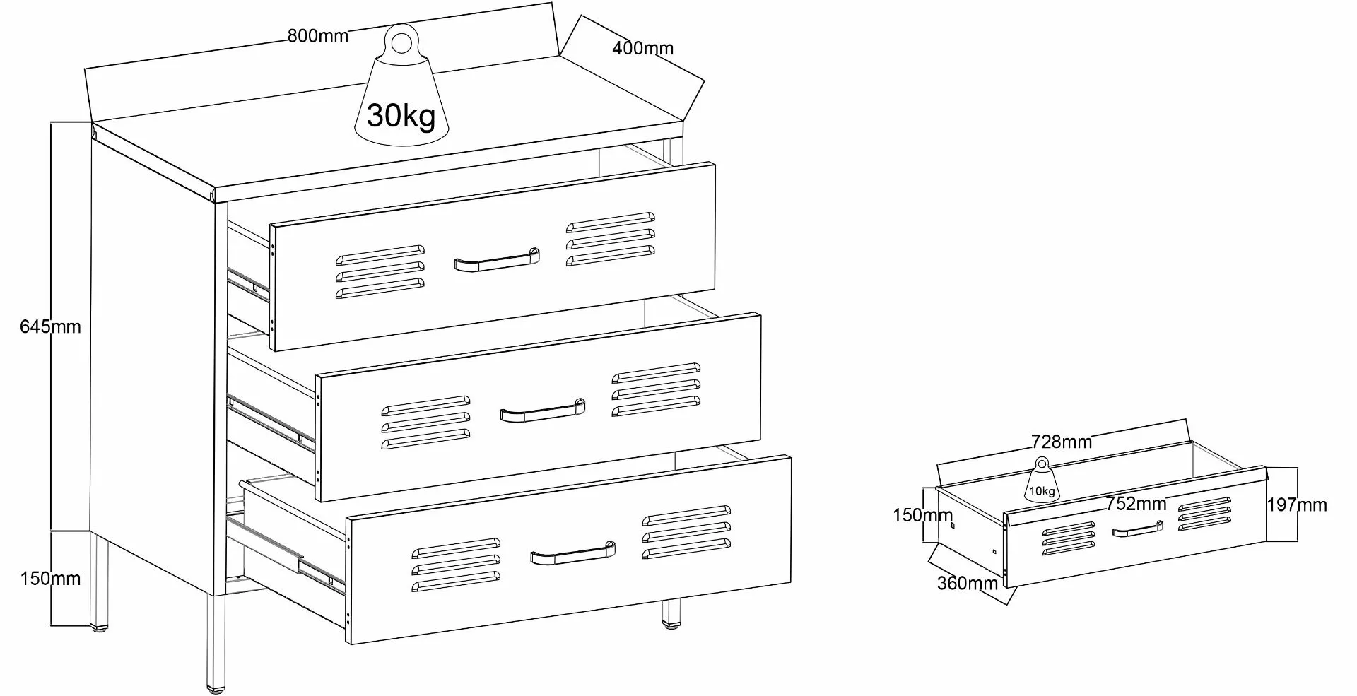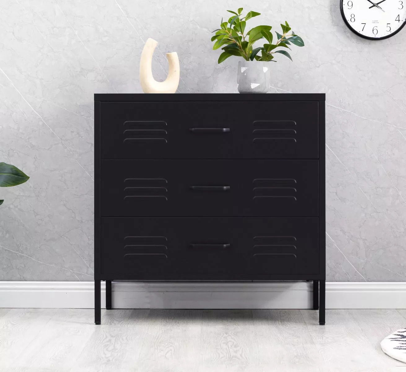 Tyylikäs metallinen tukeva Carbon-lipasto kolmella tilavalla vetolaatikolla. Lipastossa on säätöjalat ja laatikoissa laadukkaat metalliliukukiskot. Lipaston leveys on 80 cm, syvyys 40 cm ja korkeus 79,5 cm. Laatikoiden kantavuus on 10 kg.