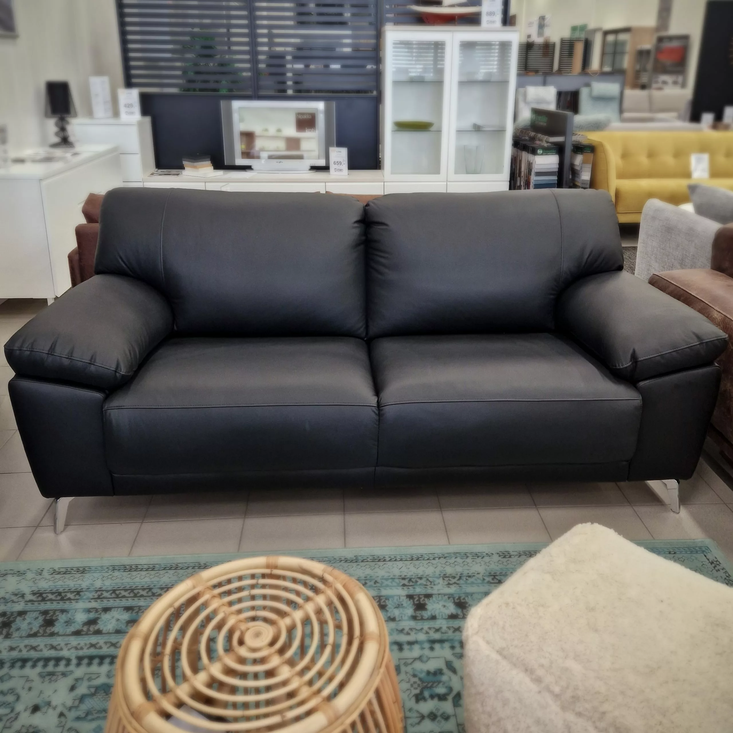 Sohva tilattavissa netistä nahka/keinonahka yhdistelmällä mustana tai valkoisena. Käyttöpinnat ovat laadukasta nahkaa ja selkä/sivut ovat keinonahkaa.