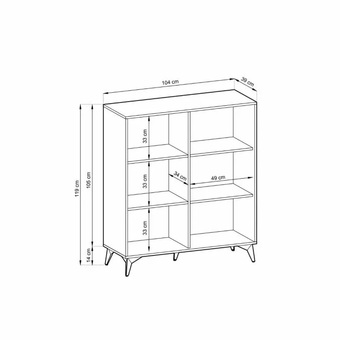 Kaapin leveys on 103,5 cm, syvyys 39 cm ja korkeus 119 cm.