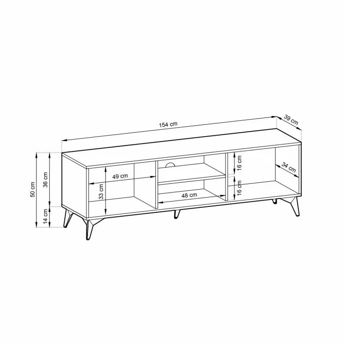 Tv-tason leveys on 153,5 cm, syvyys 39 cm ja korkeus 49,5 cm.
