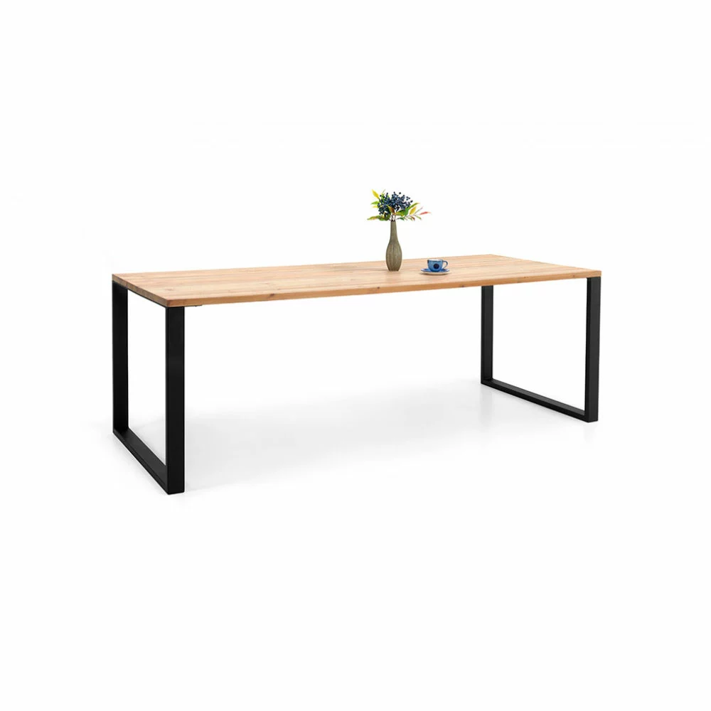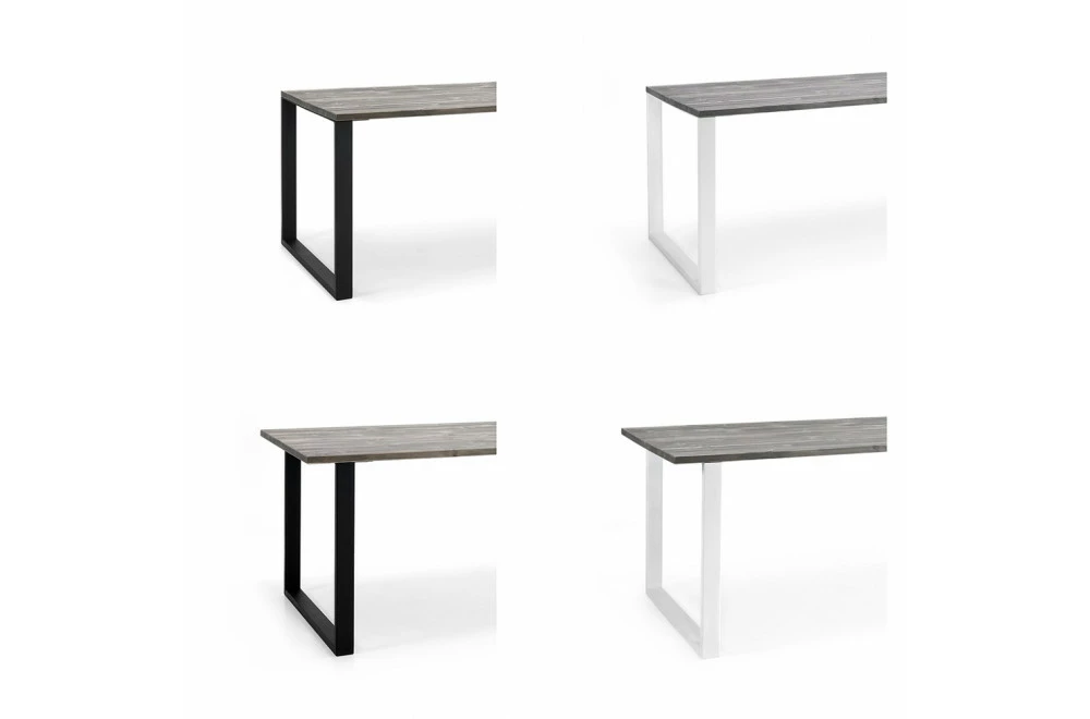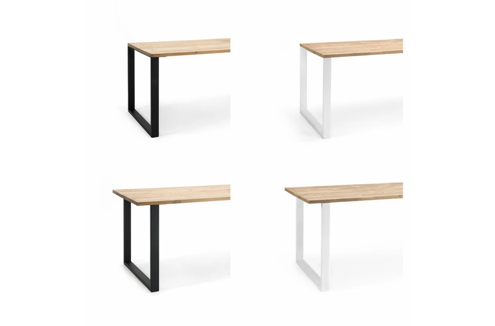 EDNA ruokapöytä, jonka kansi on massiivimäntyä ja jalat metallia. Värit musta ja valkoinen