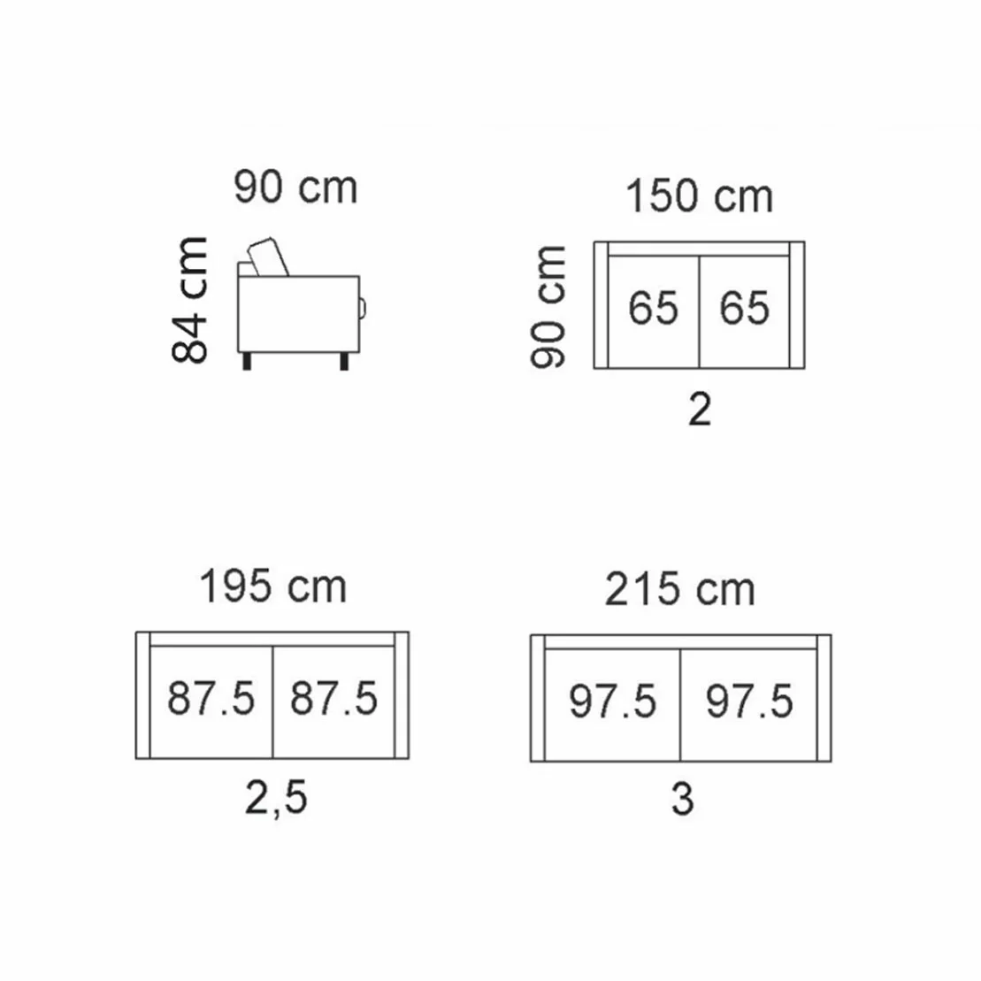 Kaikissa sohvissa on runkosyvyys 90 cm, istumasyvyys 51 cm ja istumakorkeus n. 47 cm.
