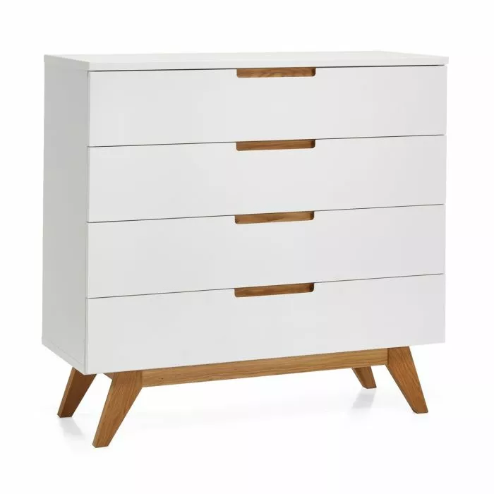 Laadukkaassa ja suoralinjaisessa Hanko-lipastossa on maalattu mdf-runko ja jalat ovat massiivitammea. Lipastossa on neljä tilavaa säilytyslaatikkoa ja metalliset liukukiskot.