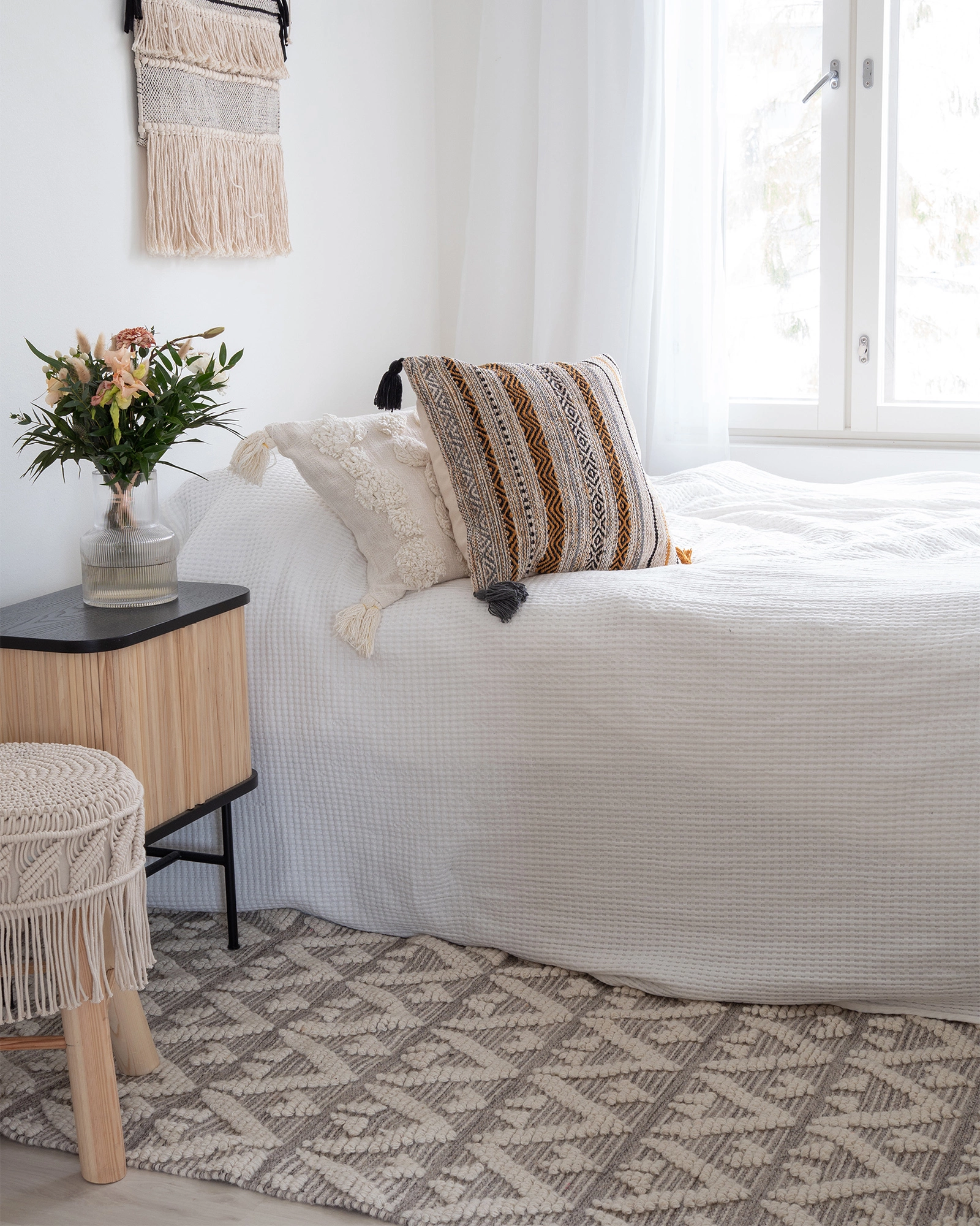 Helmi on käsinkudottu villamatto kaikkiin kodin oleskelutiloihin. Pehmeä villa tuo sisustukseen lämpöä ja tuntuu mukavalta jalan alla. Luonnolliset sävyt ja kaunis kohokuvio antavat matolle modernin ilmeen. Villa hylkii luonnostaa likaa, joten on helppohoitonen matto esimerkiksi lemmikkiperheeseen.