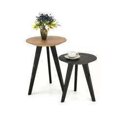 Puussa näkyy kauniisti puunsyykuviot ja pinta on lakattu. Pöydässä on kauniit aaltoilevat reunat.