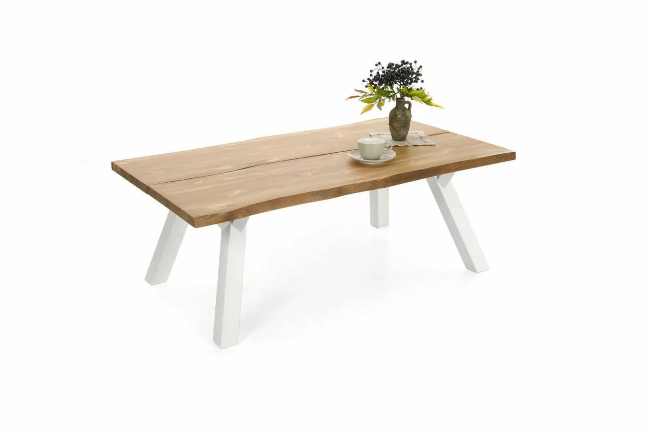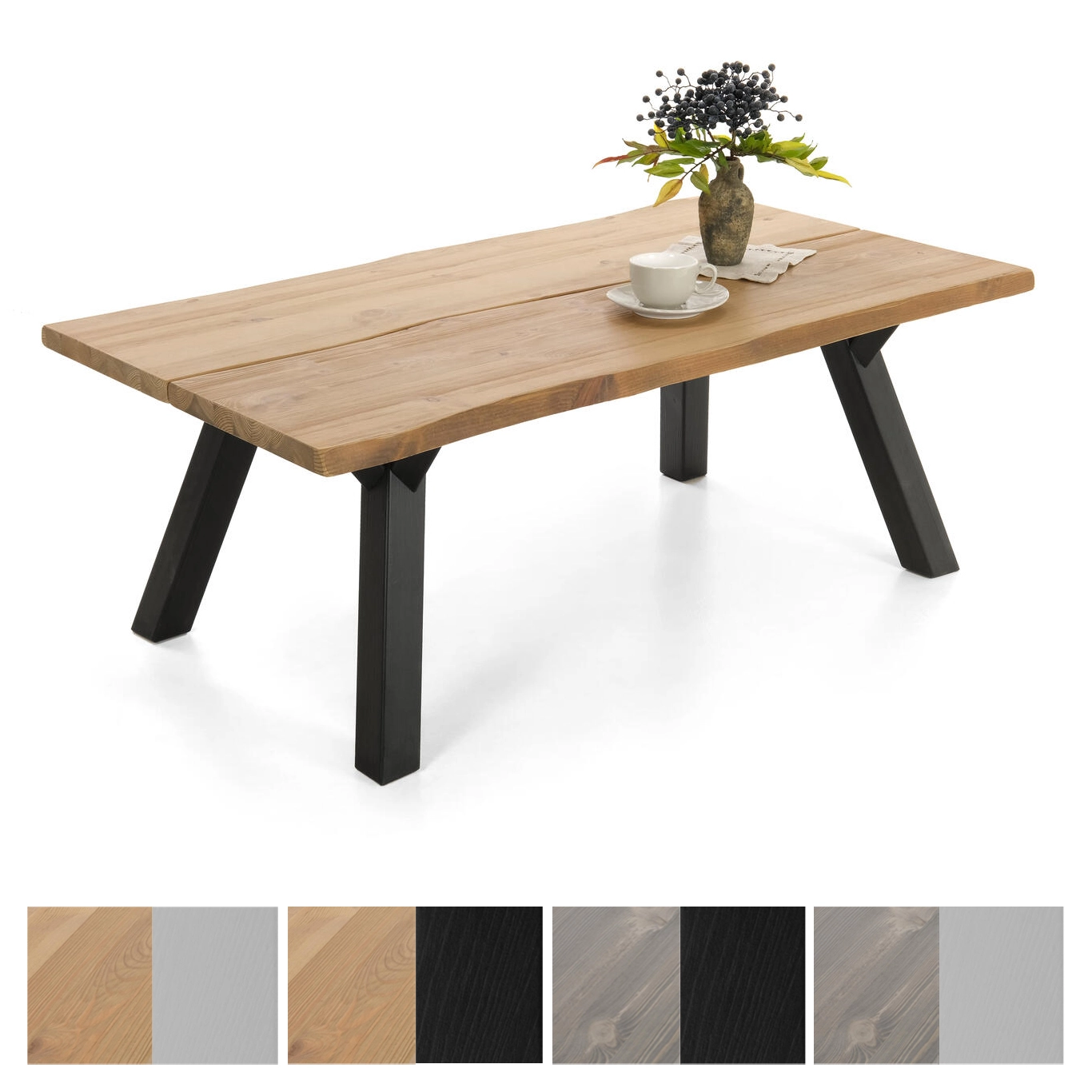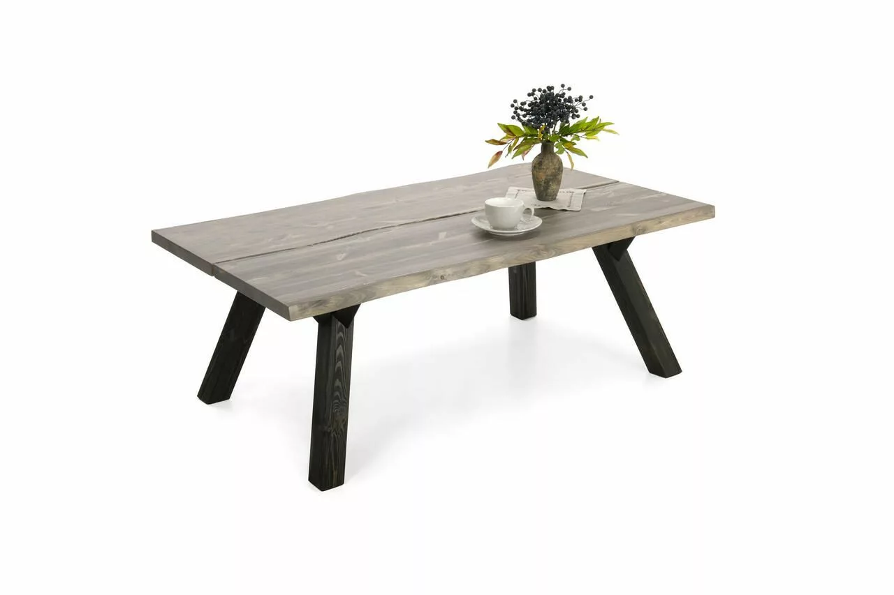 Rustiikkinen Lana sohvapöytä mäntykannella. Kansi koostuu kahdesta lankusta, joissa on harjattu pinta, jolloin puunsyyt tuntuvat ja näkyvät kauniisti. Yhdistele mieleisesi väriyhdistelmä kahdesta kansi- ja jalkavaihtoehdoista.