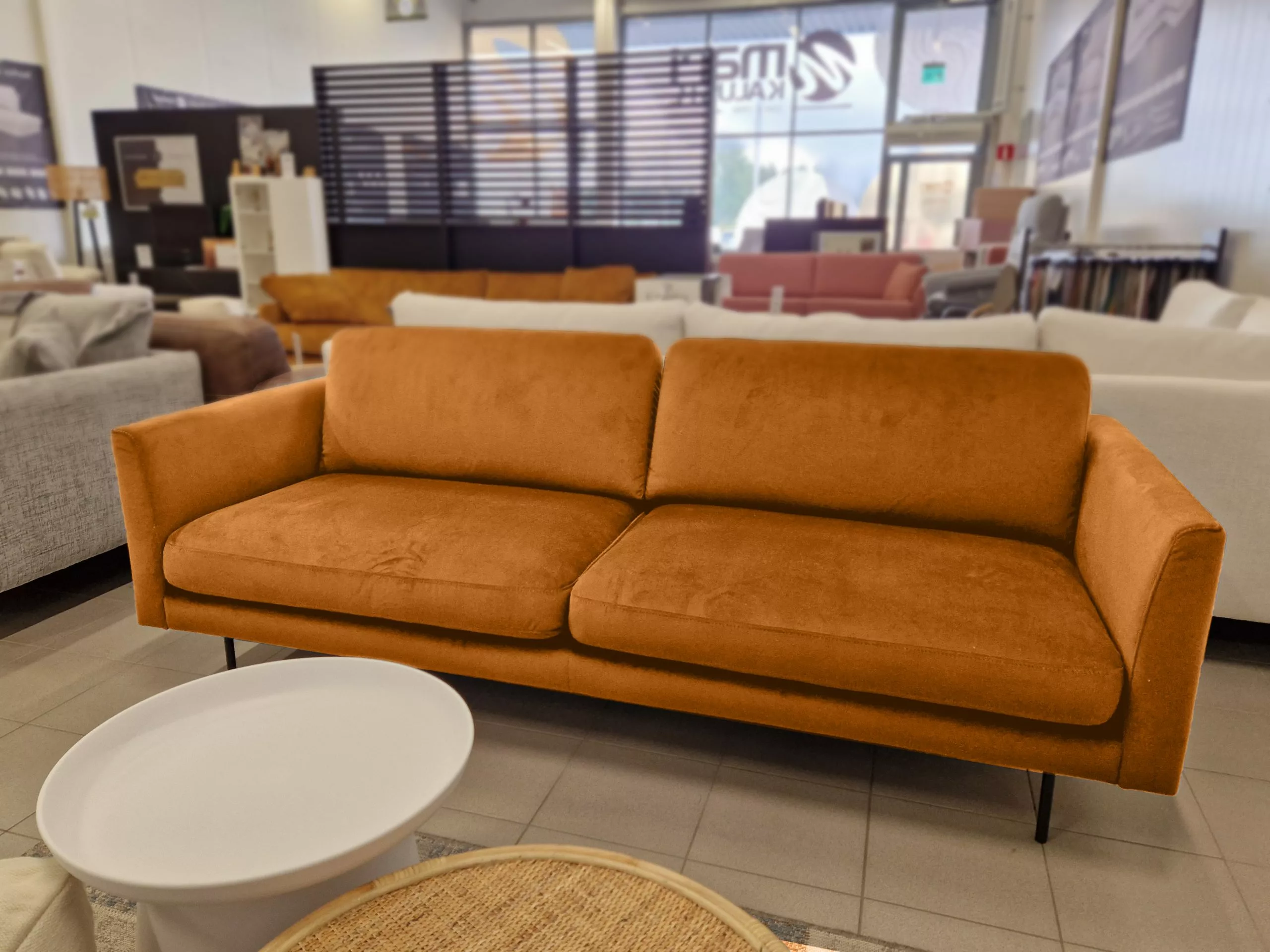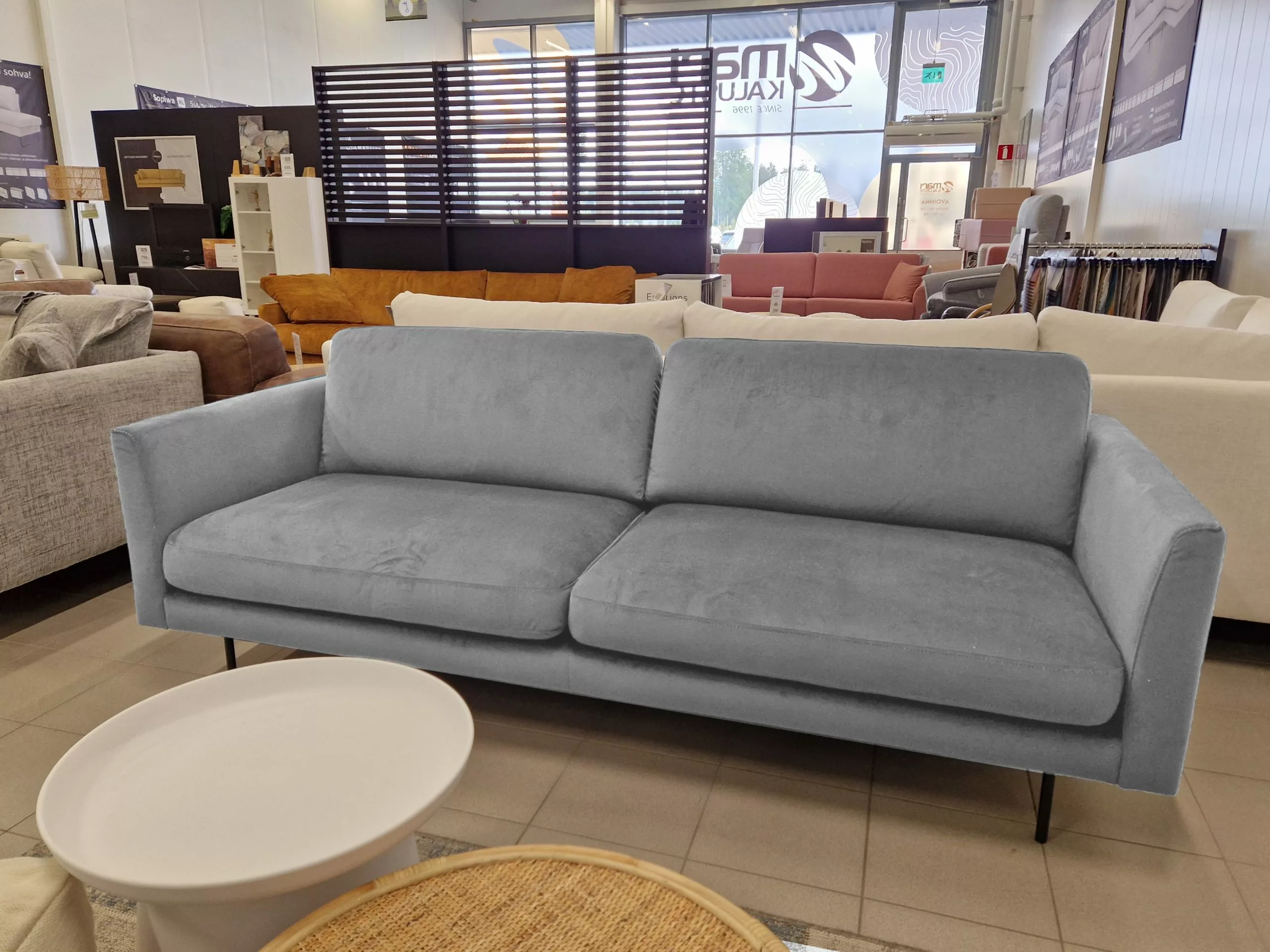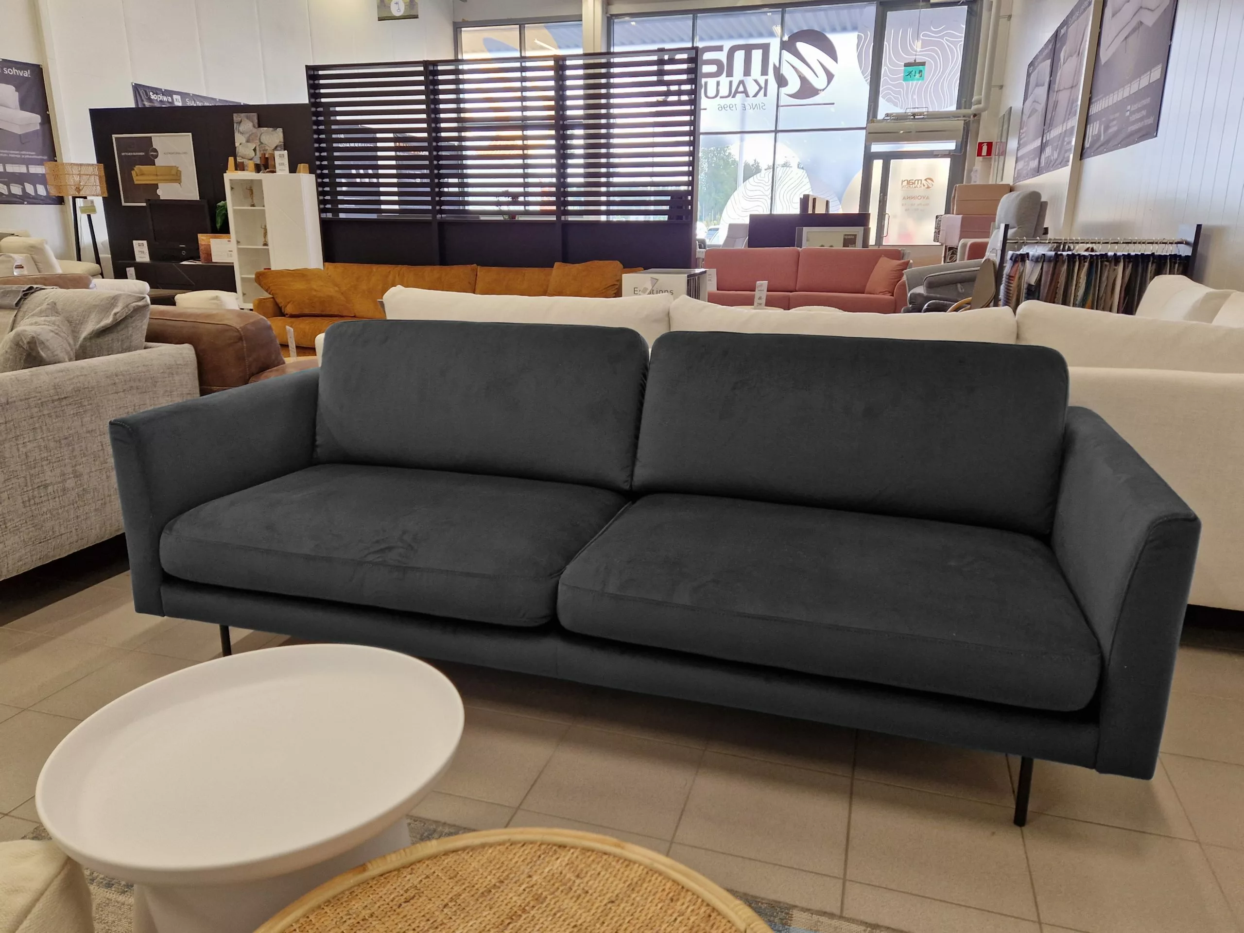 Samettinen Lario on kolmen istuttava, moderni ja pelkistetyn tyylikäs sohva. Lario on verhoiltu laadukkaalla Luxor -kankaalla. Selkätyynyt pysyvät paikoillaan runkoon kiinnitettyjen vetoketjujen avulla, ja istuintyynyt eivät pääse luisumaan niissä olevien tarranauhojen ansiosta. Istuintuntuma on pintapehmeä ja napakka. Jalkoina on mustat, 19 cm korkeat metalliset tolppajalat.