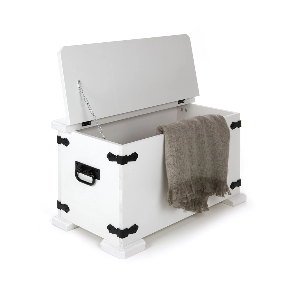 Hurmaava arkku upealla pintakäsittelyllä. Pinta on antiikkikäsitelty harjaamalla, jonka päälle on vedetty vaha. Upeat helat on käsintehtyjä. Arkussa on suuri laskutila ja sinne laitta vaikka lehdet ja pientavaran säilöön.
