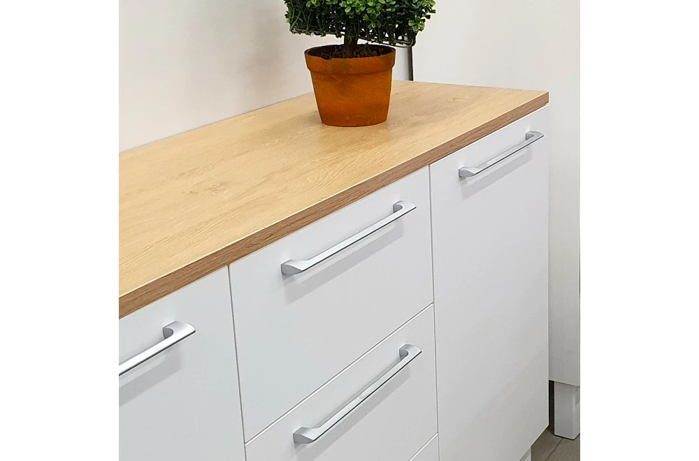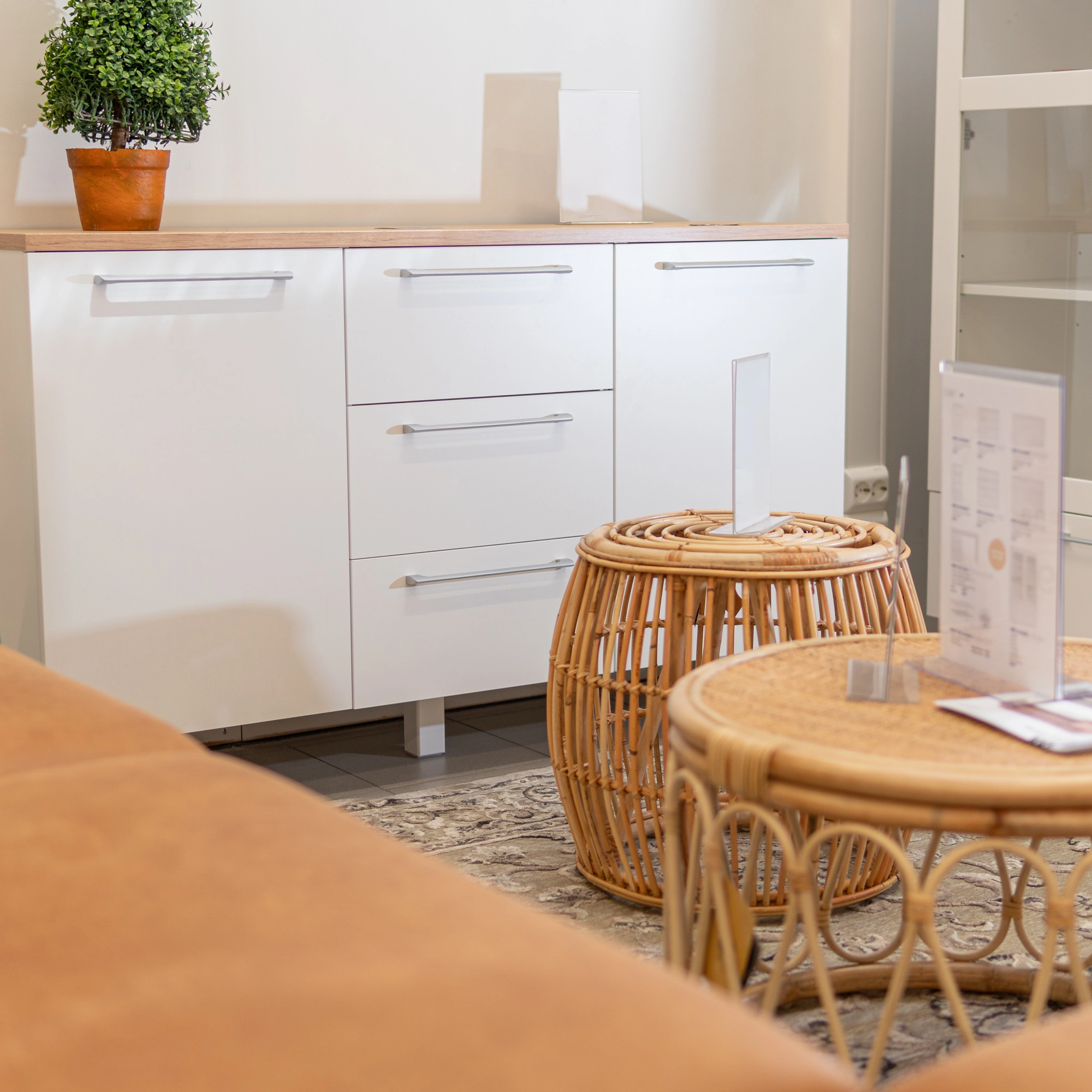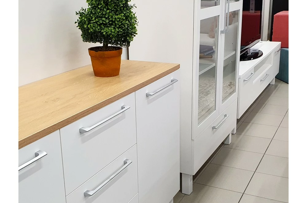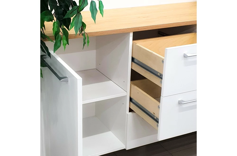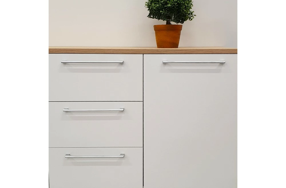 Tyylikäs ja käytännöllinen Lumme senkki kahdella saranaovella ja kolmella laatikolla. Senkki tarjoaa reilusti paljon kaivattua kaappitilaa. Materiaaleina on käytetty vaneria ja kalustelevyä, jalka on puuta. Laatikoissa on laadukkaat leveät metallikiskot.
