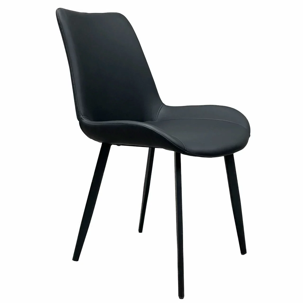 Erittäin hyvällä istuinmukavuudella ja tyylikkäällä ulkonäöllä varustettu tuoli. Laadukas PU verhoilu, väri musta. Musta metallijalka.