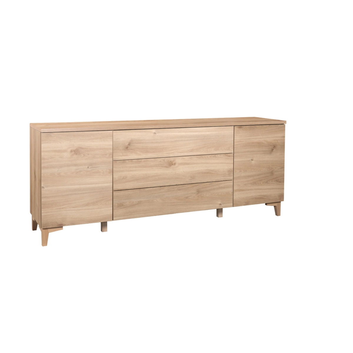 Hiipakan kotimainen Niklas tuoteperhe tuo lämpöä ja tyyliä kotisi sisustukseen. Kaapissa ja laatikoissa mahtuu säilyttämään tavaraa siististi. Senkissä on keskellä kolme leveää laatikkoa ja reunoilla kaapit. Laatikoissa ja ovissa on käytänöllinen Push-open mekanismi, minkä ansiosta vetimiä ei ole. Korkea tammen värinen puujalka tekee kokonaisuudesta siron näköisen.