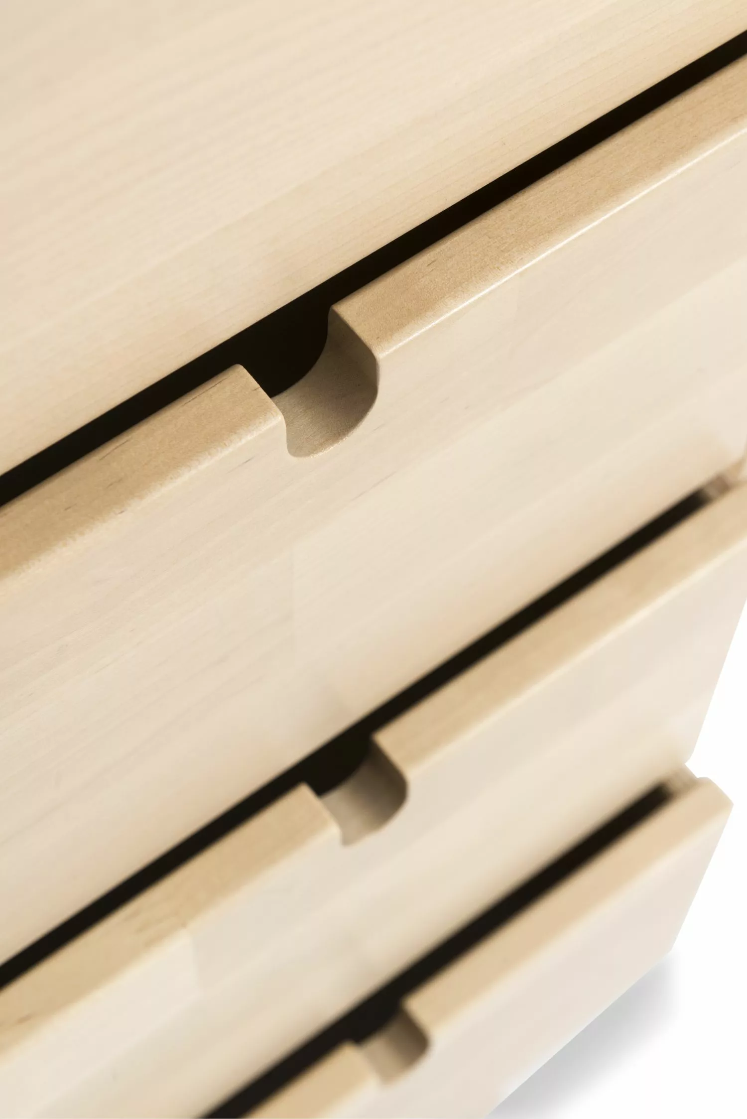 Huippulaatuinen Notte sarja valmistetaan kokonaan koivusta. Kauniit pienet yksityiskohdat viimeistelevät lipaston tyylikkään ulkonäön. 20cm korkea jalka keventää tuotteen ulkonäköä.