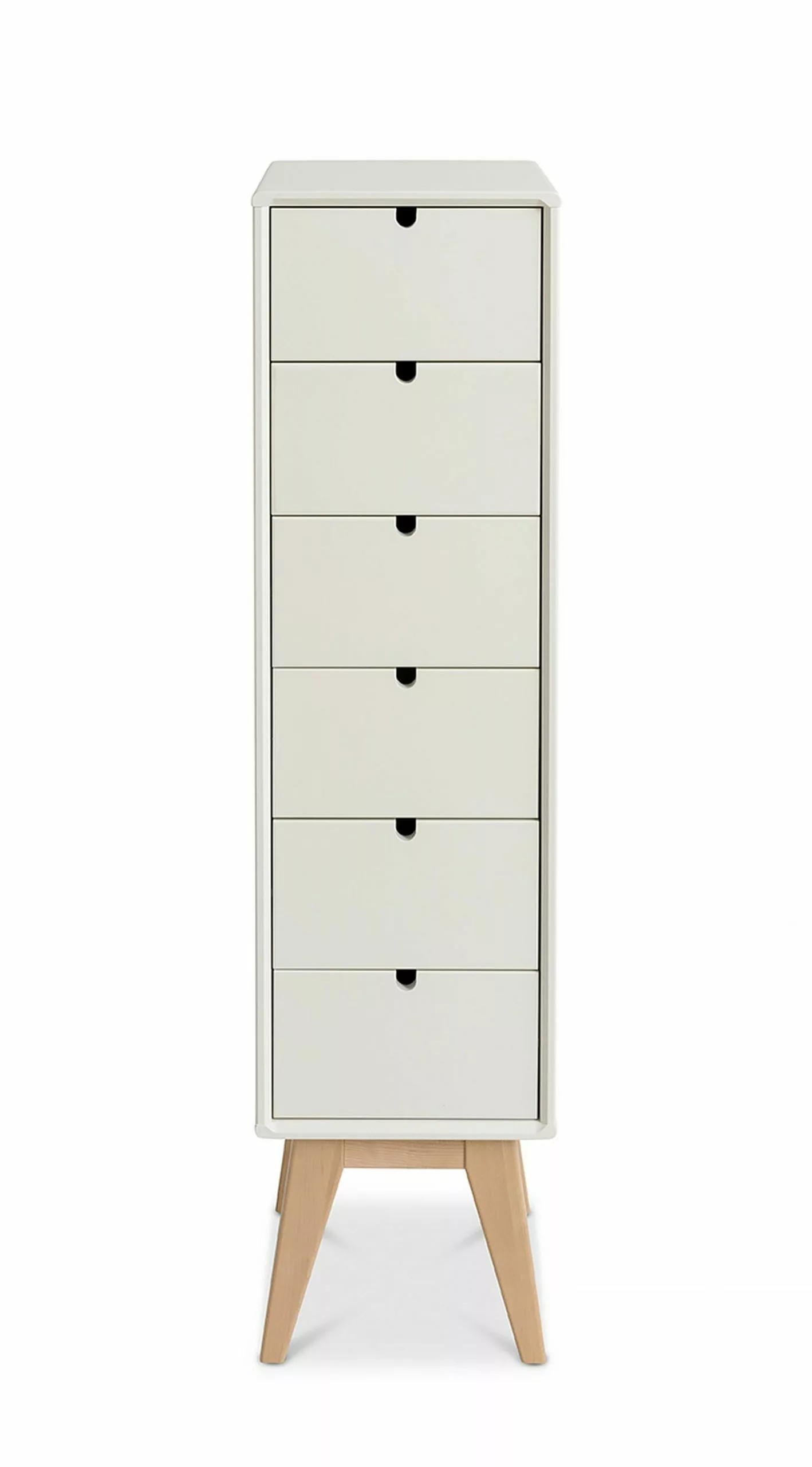 Kiteen huonekalutehtaan Notte sarja on kaunis, muodoltaan hieman retrotyylinen huonekalumallisto. Notte korkea lipasto on kapea, minkä ansiosta se mahtuu pieneenkin tilaan tuoden paljon säilytystilaa kotiin.