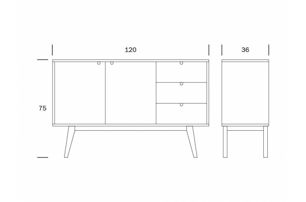 Kiteen huonekalutehtaan Notte sarja on kaunis, muodoltaan hieman retrotyylinen huonekalumallisto. Notte senkissä on kaksi ovea sekä kolme laatikkoa. Kaapissa on yksi hyllylevy. Senkki on sekä kaunis sisustuselementti sekä käytännöllinen huonekalu kotiin.