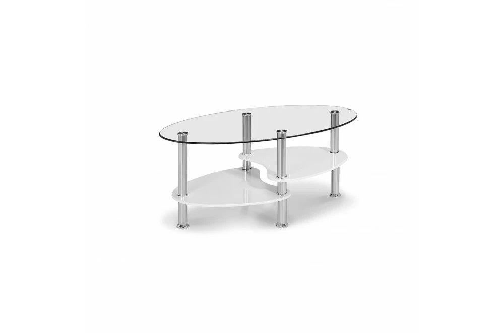 Sisusta kotiasi helposti tyylikkään Oval sohvapöydän avulla. Vaalea väritys sopii moneen kotiin. Lasi kansi sekä kromi jalat tuovat hienostunutta tyyliä tilaan.