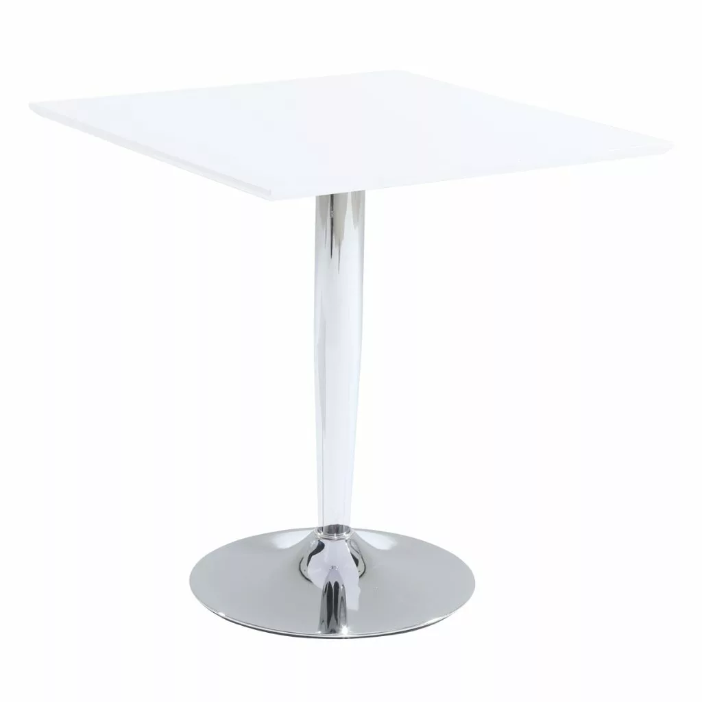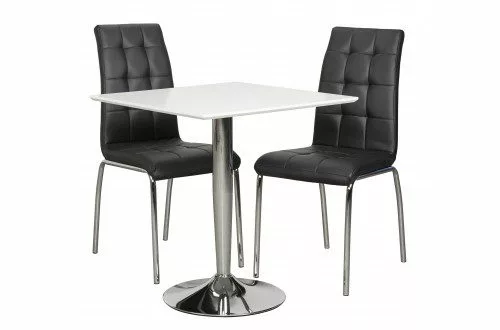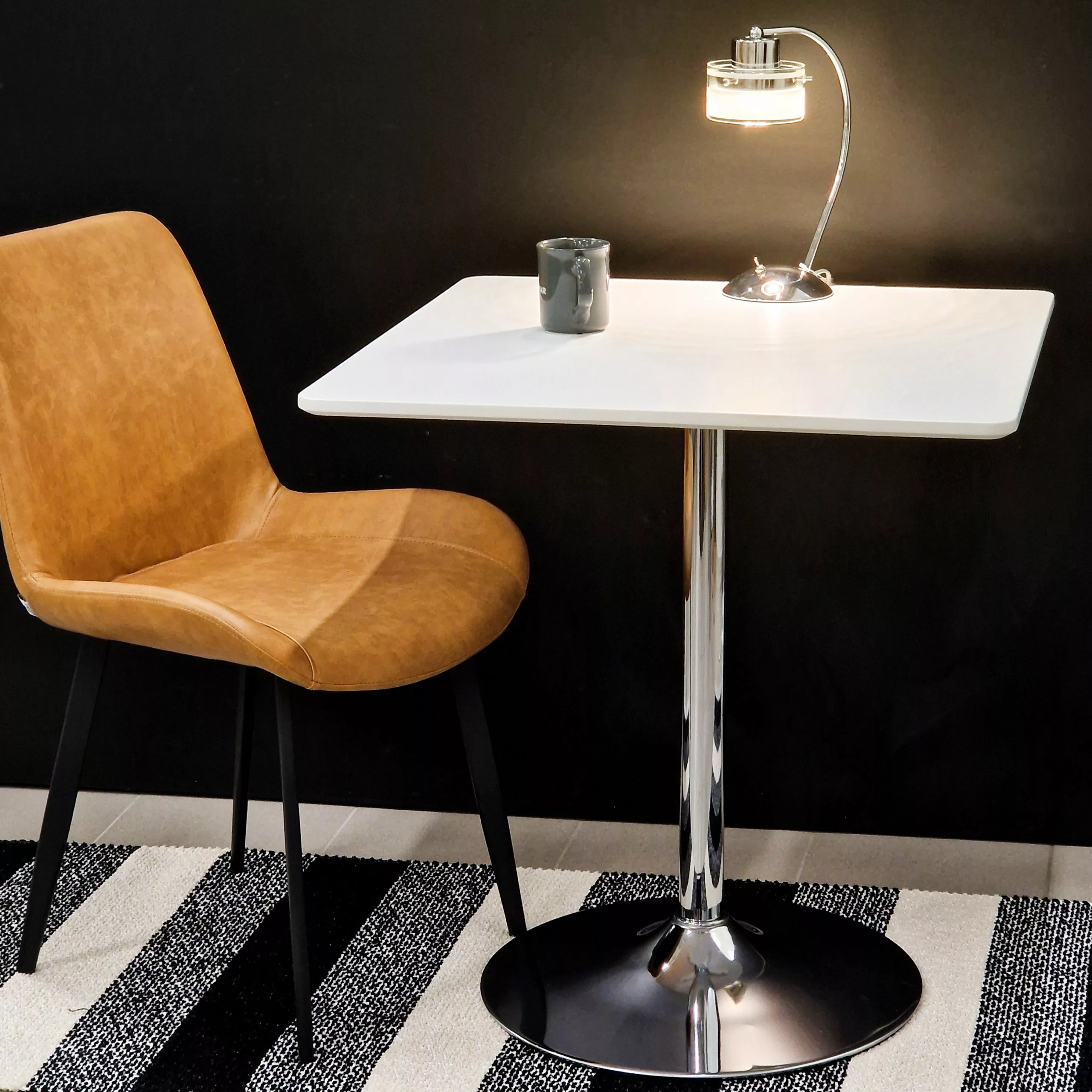 Upea pienikokoinen Rafla pöytä sopii mainiosti pienikokoiseen tilaan, esimerkiksi yksiöön. Täydellinen kahdelle henkilölle. Valkoinen mdf-kansi ja kaunis kromattu metallijalka. Trumpetti jalka pitää pöydän tukevasti paikoillaan.