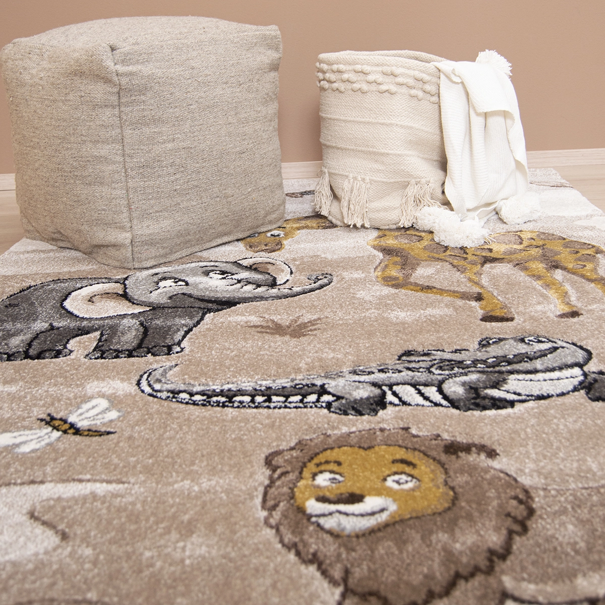 Savanni-matto on mukavan pehmeä, lyhytnukkainen matto lastenhuoneeseen. Maton lämpöisen neutraali pohjaväri antaa matolle raikkaan ilmeen ja rauhoittaa lastenhuoneen värikirjoa. Hauska ja leikkisä savannikuosi laittaa mielikuvituksen lentoon ja innostaa lapsia leikkimään. Hoitona säännöllinen imurointi, tuuletus ja tarvittaessa vesipesu.