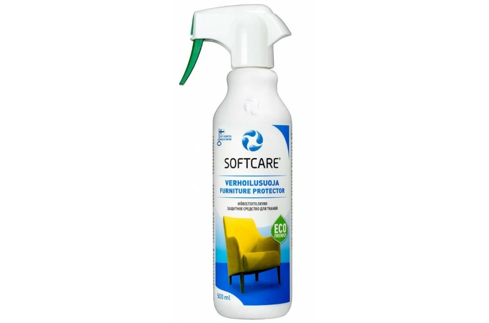 Tehokas ja helppokäyttöinen Softcare-verhoilusuoja muodostaa tekstiilikuitujen ympärille näkymättömän molekyyliverkon, estäen lian ja kosteuden imeytymisen kankaaseen. Softcare verhoilusuoja ei vaikuta tekstiilin ominaisuuksiin millään tavalla. Tuote on syttyvää, joten suojausta tehtäessä ei saa tupakoida eikä suihkutella avotulen ääressä.