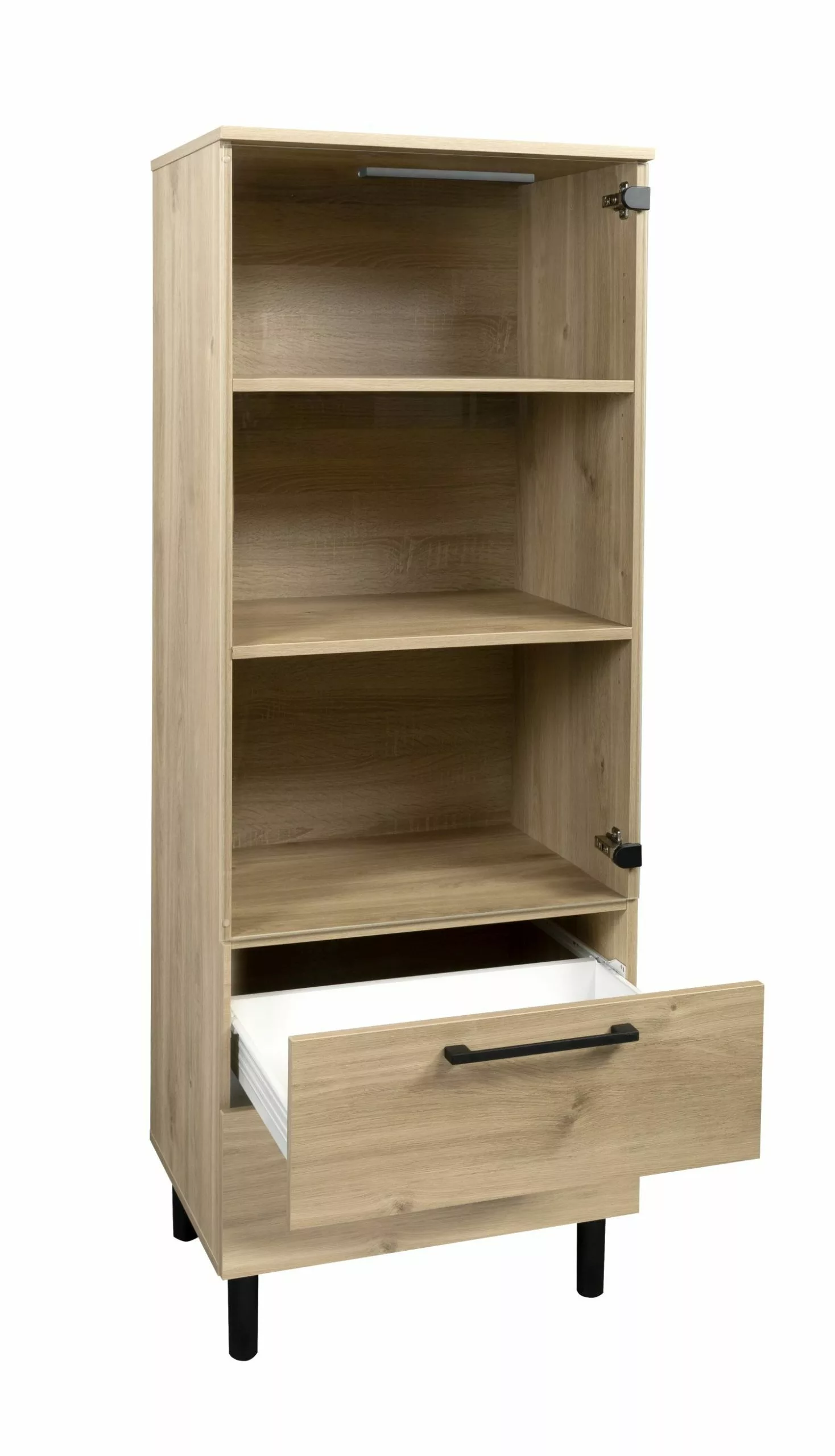 Kalusteiden runko ja etusarjat ovat 16 mm kalustelevyä, värit hunajatammi musta tai valkea. Ovessa on hidastavat saranat.