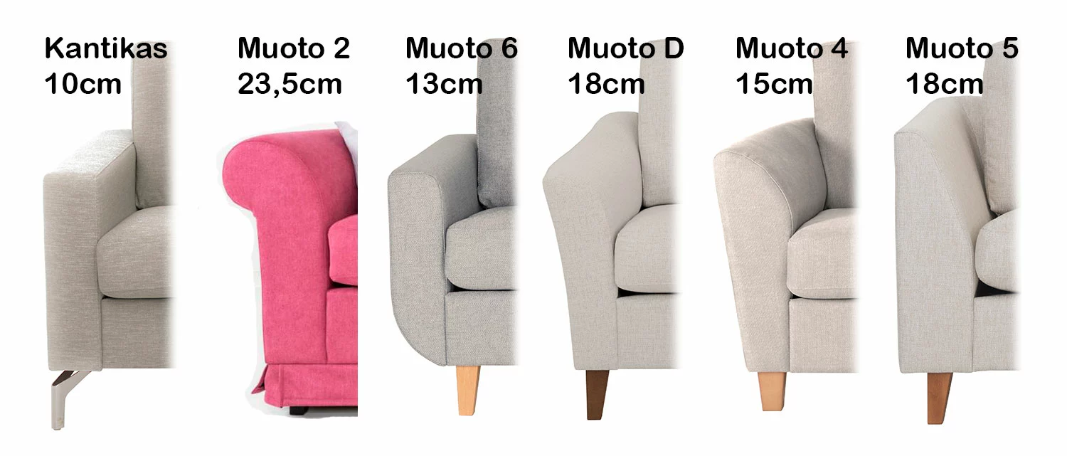 - Sohvan kokonaisleveys määräytyy valitsemasi käsinojan mukaan.