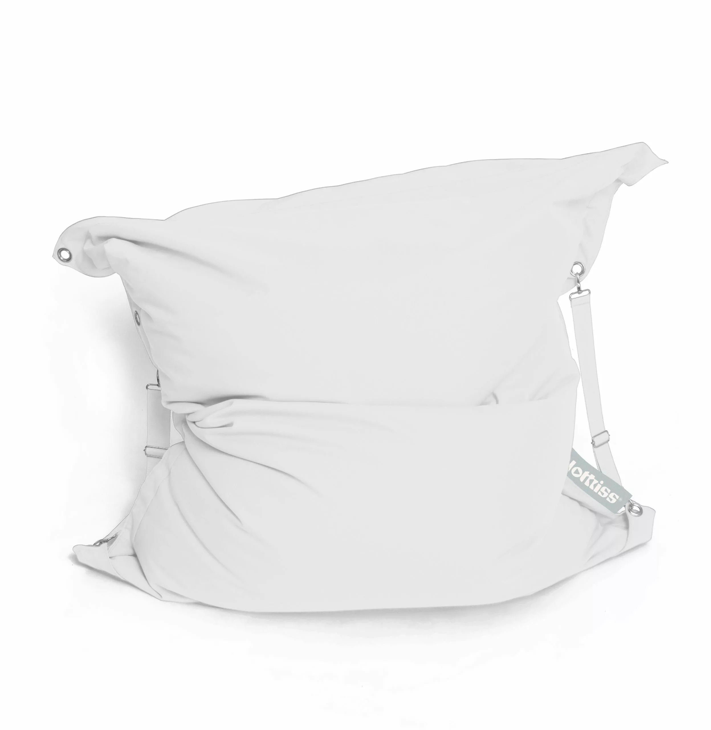 SUPER MAX Extrassa on lisänä kätevät remmit, joiden avulla säkkituolia on helppo siirrellä. Tuolissa on 6 kpl purjerenkaita ja säädettävä nauha, jolla remmien pituutta ja paikkaa on helppo vaihdella. SUPER MAX Extra sopii sekä sisälle, että kevyeen ulkokäyttöön esimerkiksi terassilla. Sen päällä on mukava lekotella vaikkapa telkkarin edessä, takkatulen loimussa tai kavereiden kanssa jutustellessa. Kestävästä kankaasta ommeltu SUPER MAX Extra tykkää kun sitä möyhitään ja se mukautuu istujansa mukaan. Mukavan pehmeä ja lämmin sisärae tekee löhöilystä rentoa. MAXia saa eri kokoisena käyttötarkoituksen ja tilan mukaan. SUPER MAX Extra ja SUPER MAX ovat samaa jättikokoa, 140 x 180 cm, paino 10 kg. SUPER MAX Extra, kuten muutkin HOTKISS mallit, on helppo pitää puhtaana ja putsata tahroista. Jopa valkoinen SUPER MAX pysyy valkoisena ja tyylikkäänä sisustus- ja käyttökalusteena. Valitse mieluinen väri raikkaista vaihtoehdoista!