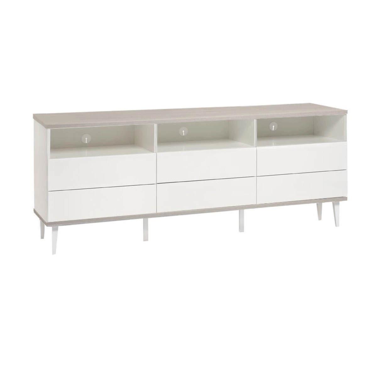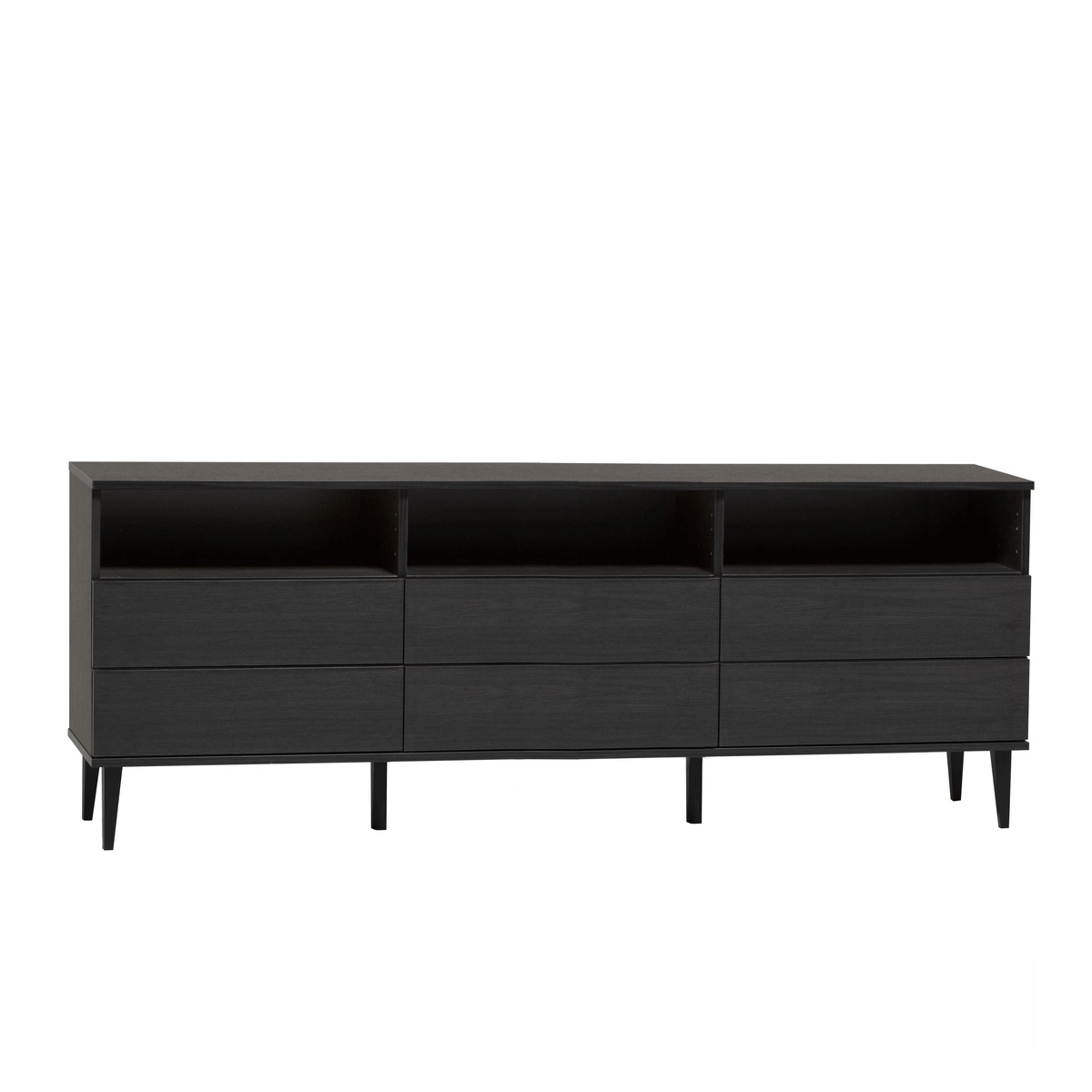 Taso kuudella laatikolla ja avo-osilla, joita peittää kirkkaat lasit. Ylimmäisten laatikoiden sisällä on siis yksi hylly ja laatikoiden etusarjat on puoliksi kalustelevyä ja puoliksi kirkasta lasia. Avo-osien takaseinässä on johdon paikat.