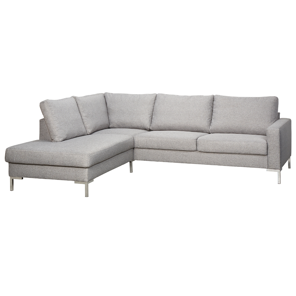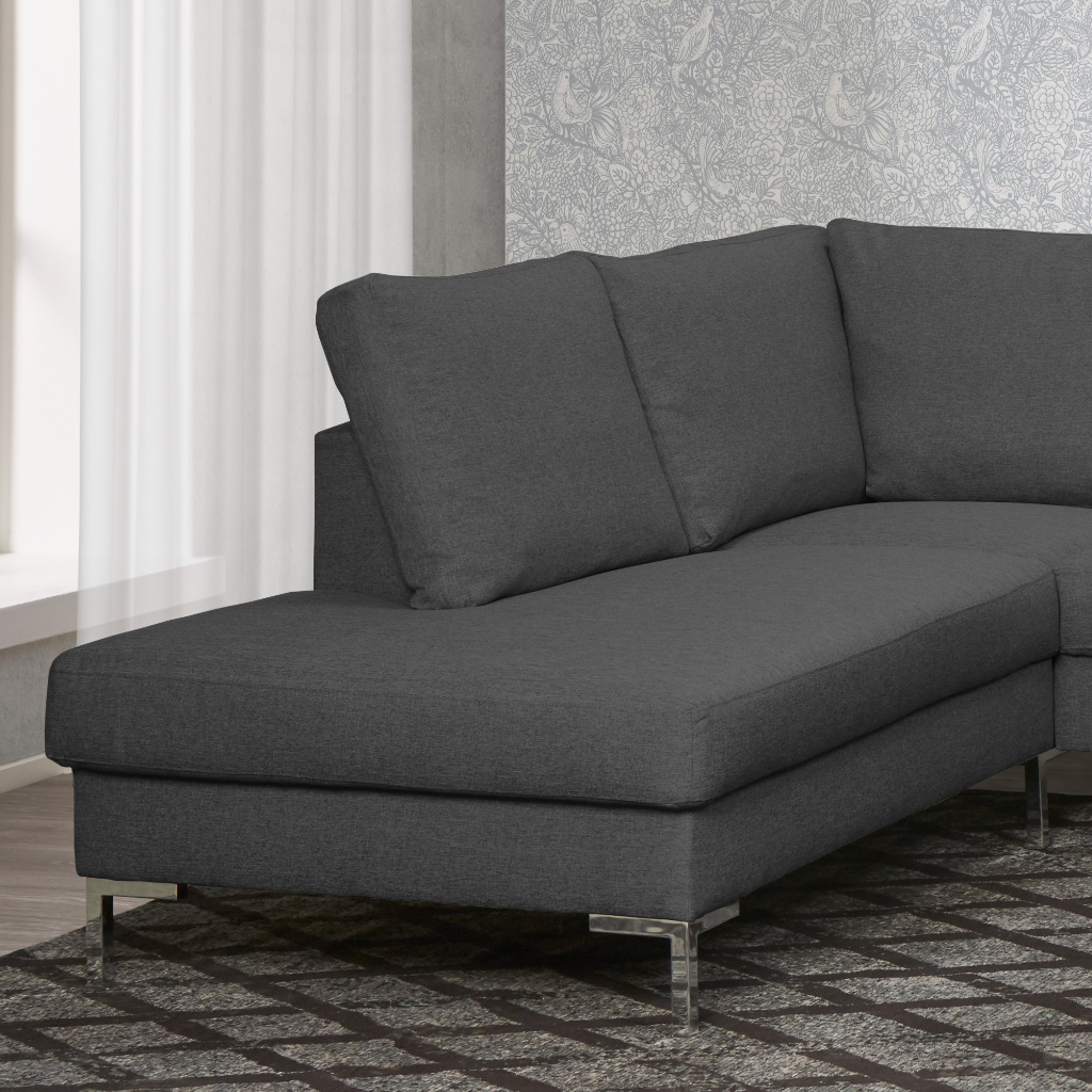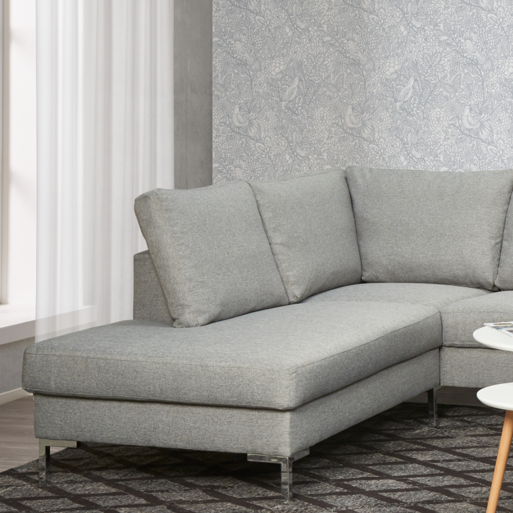 Tyylikäs Tracy avokulmakulmassa on korkeat jalat, jotka helpottavat siivousta.