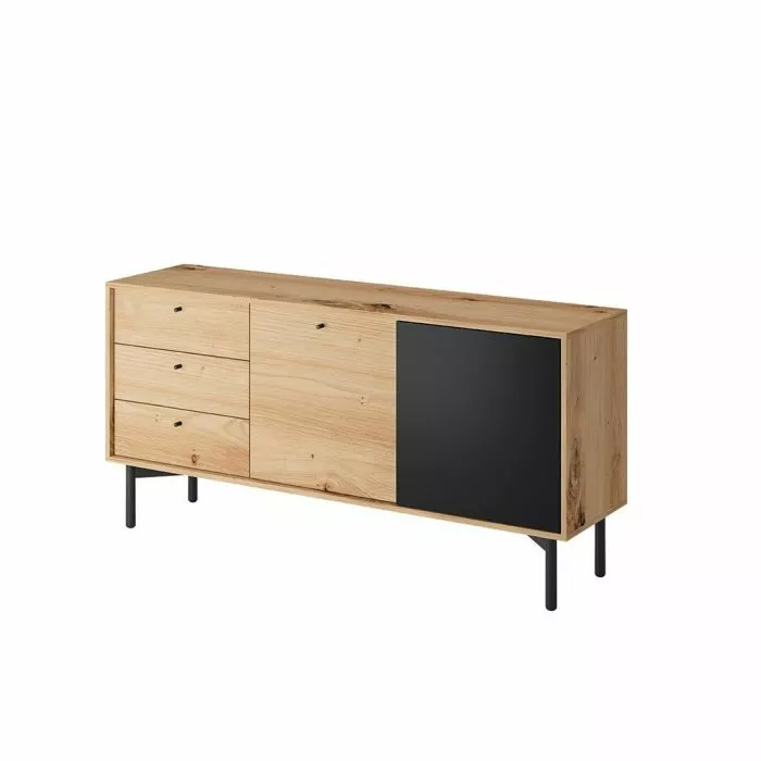 Tyylikäs tammen värinen Tuuli-senkki, josta löytyy runsaasti säilytystilaa. Senkissä on 16 mm laminoitu kalustelevyrunko, musta ovi, ABS-reunanauha sekä mustat maalatut puujalat.