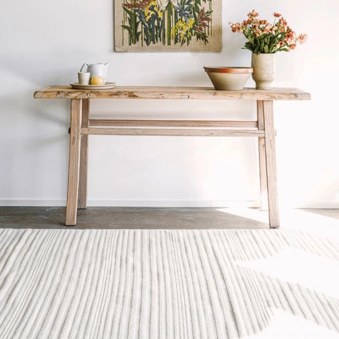 Sertifioidusta villasta kudottu, hienostunut ja pelkistetty HAIKU on kuin kolmisäkeinen runo. Meditatiivisen herkkä tunnelma syntyy maton pinnan rytmisistä sidosraidoista.