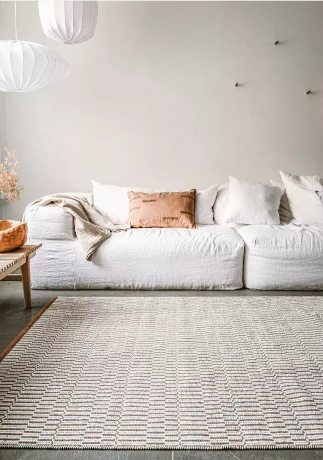 Tyylikkäästi kuvioitu kaksivärinen matto tuo sisustukseen lämmintä materiaalintuntua ja kiinnostavaa geometristä rytmiä. LATUA-matossa on myös raikas tuulahdus nostalgiaa.